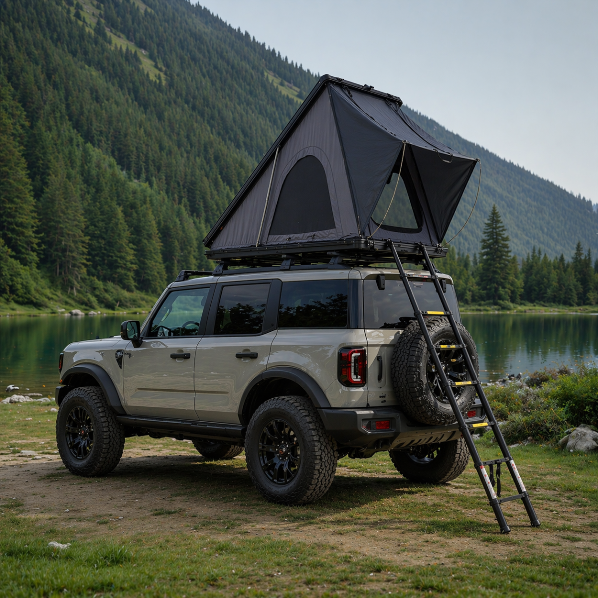 Tente compatible avec les SUV, pick-up et 4x4 ayant une capacité de charge sur le toit d’au moins 270 kg.